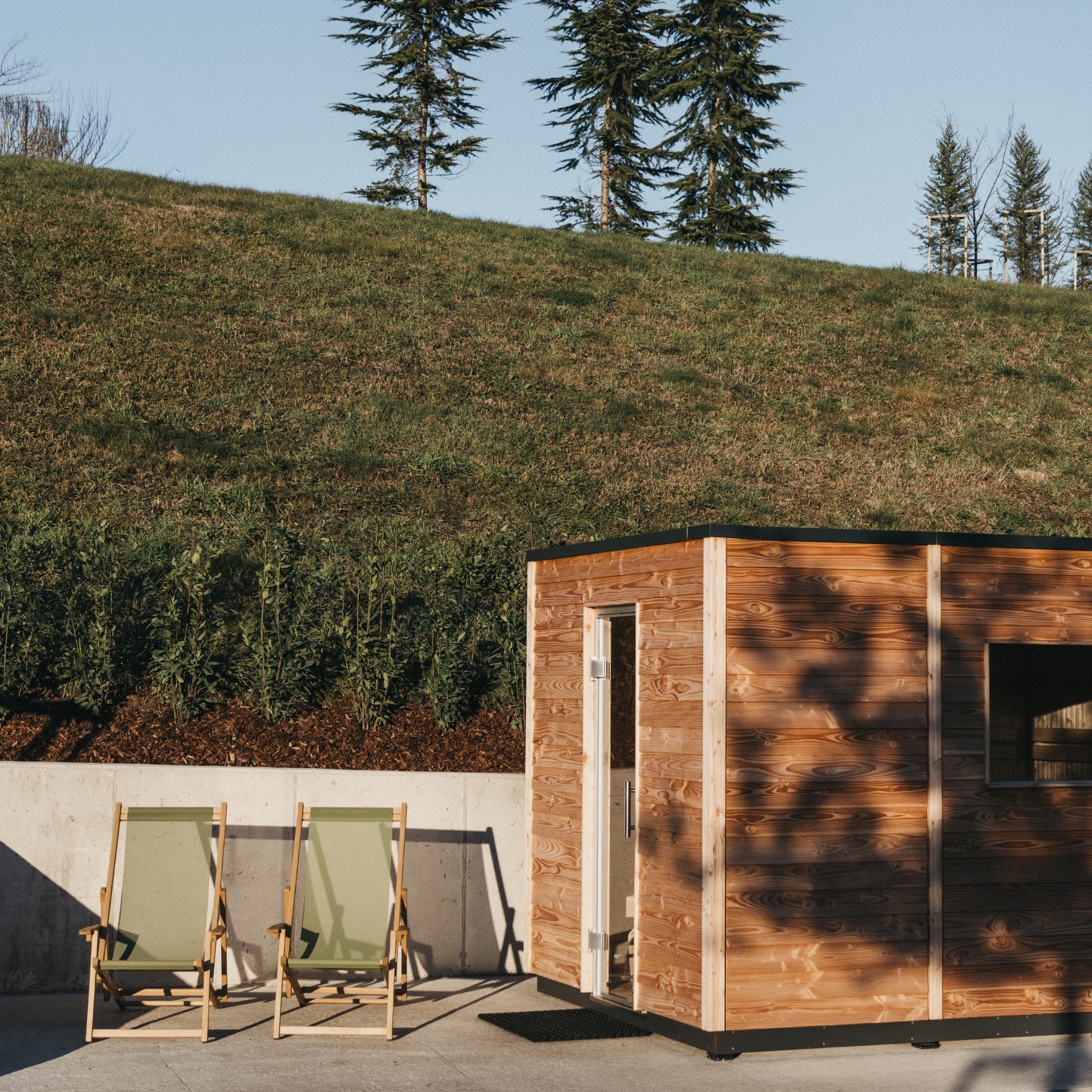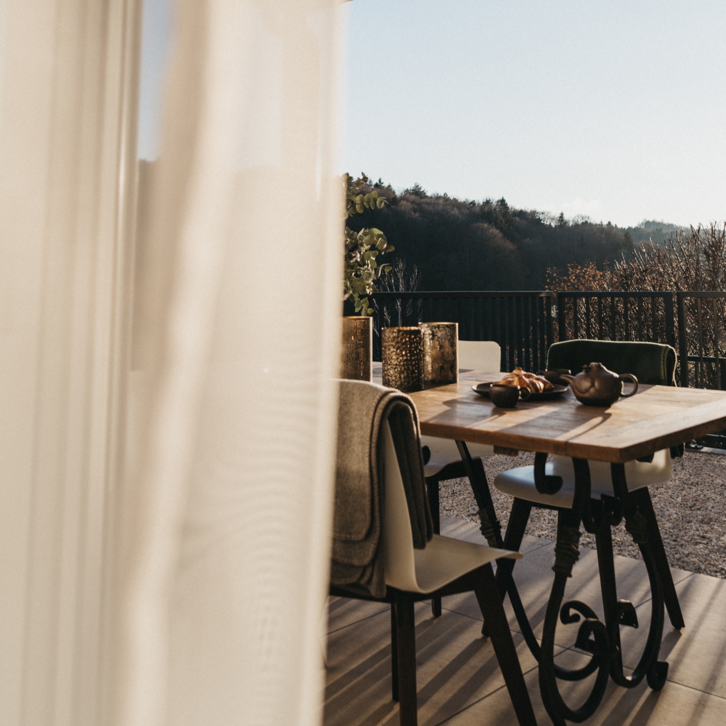 Im Obergeschoss empfängt Sie ein großzügiger Eingangsbereich mit Garderobe und WC. Gefolgt von einer hochwertig ausgestatteten Küche mit Essbereich und ein großes Wohnzimmer mit Balkon und Terrasse. Zusätzlich steht Ihnen eine eigene, komfortable Aussensauna zur Verfügung, die ungestörte Wellnessmomente inmitten der Natur ermöglicht.