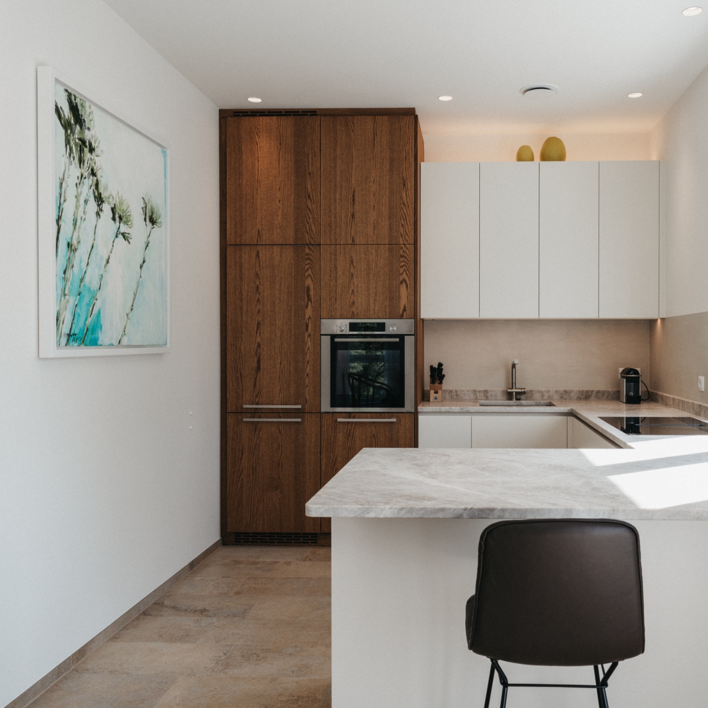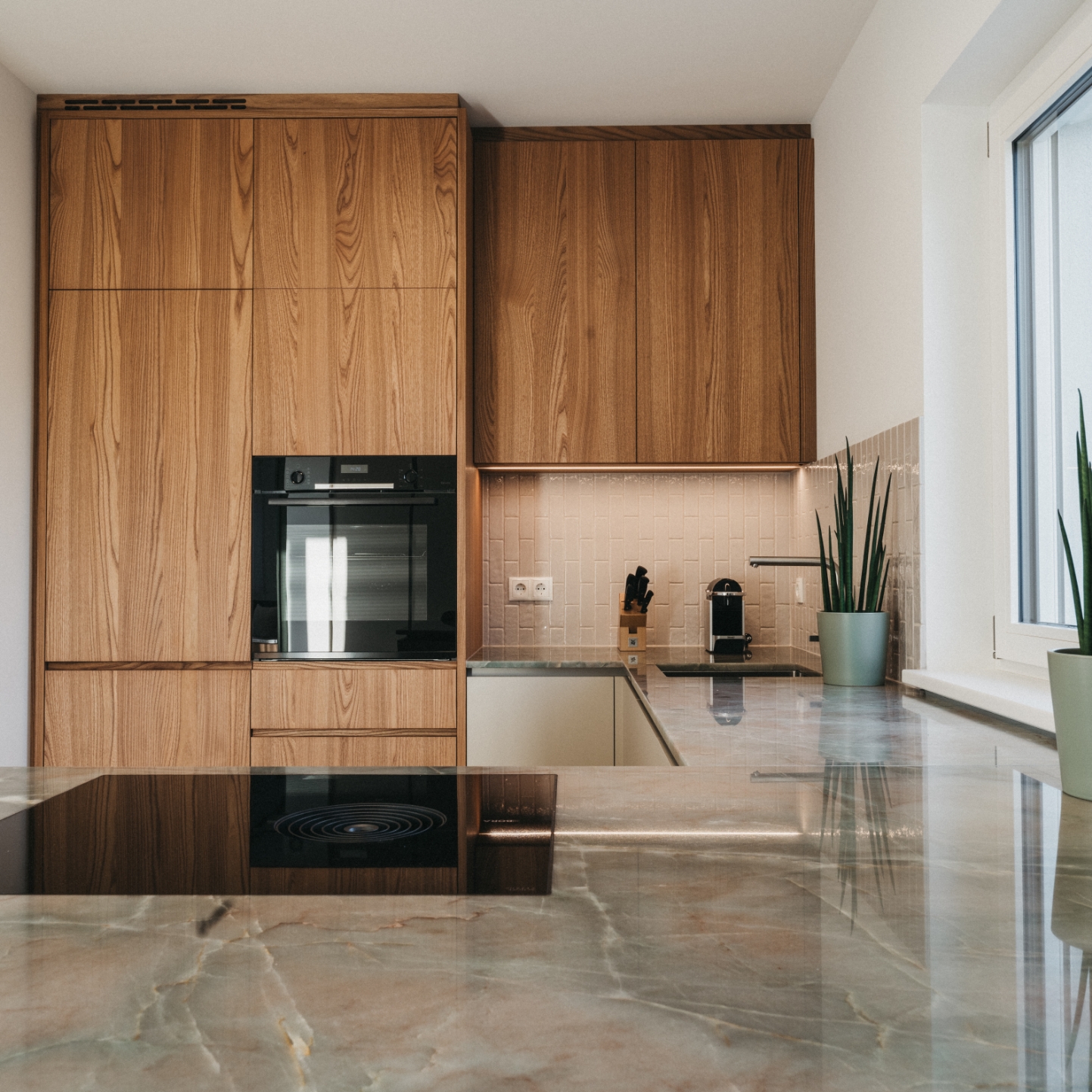 Die Räumlichkeiten erstrecken sich über zwei Etagen und sind südseitig ausgerichtet. Im Erdgeschoss befindet sich der große, helle Wohnraum mit voll ausgestatteter Küche, Essbereich, einem großzügigen Vorraum und dem Badezimmer mit WC. Ausgestattet mit hochwertigsten Materialien, sowie Design und Kunst.